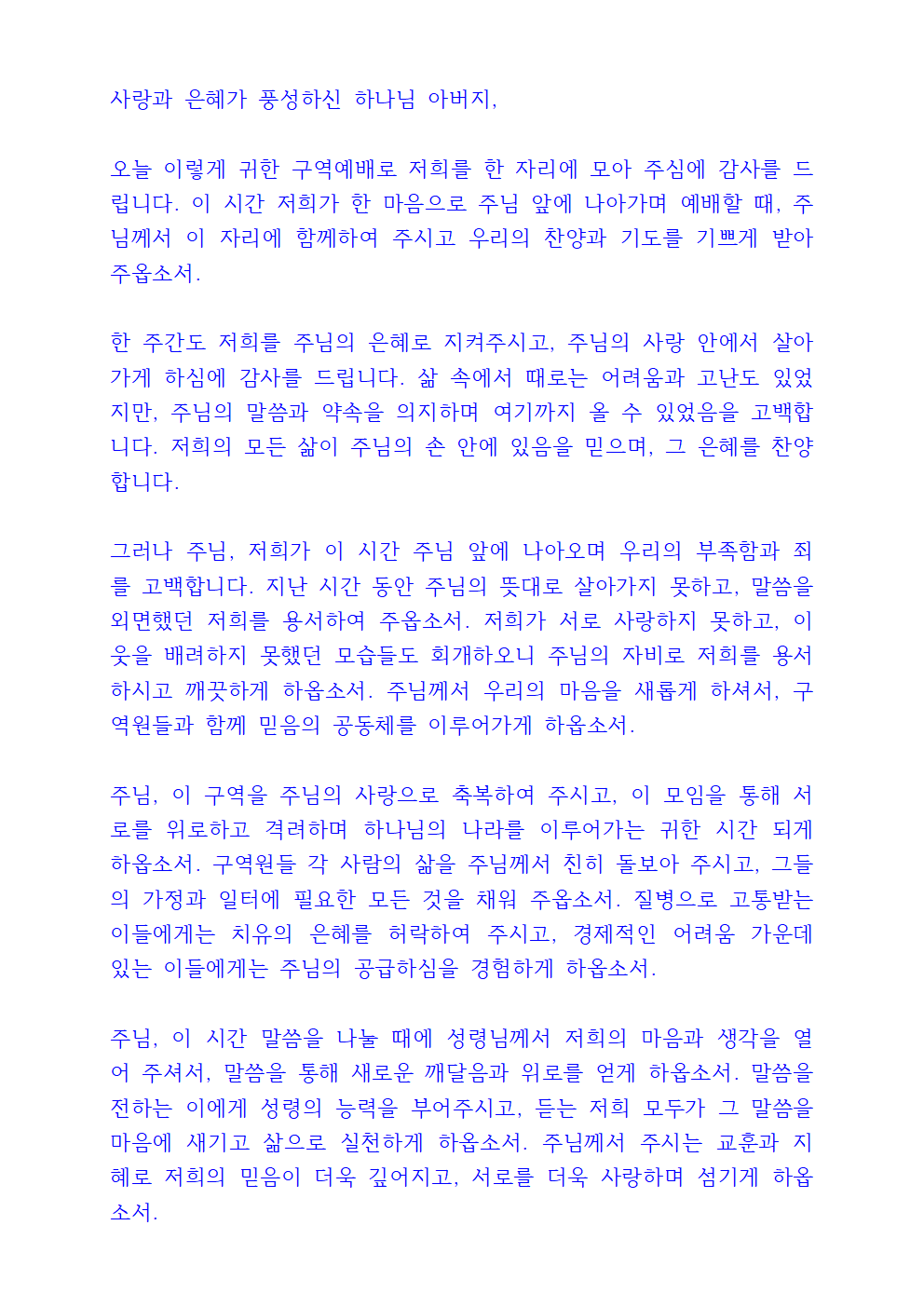 구역예배 기도문 내용