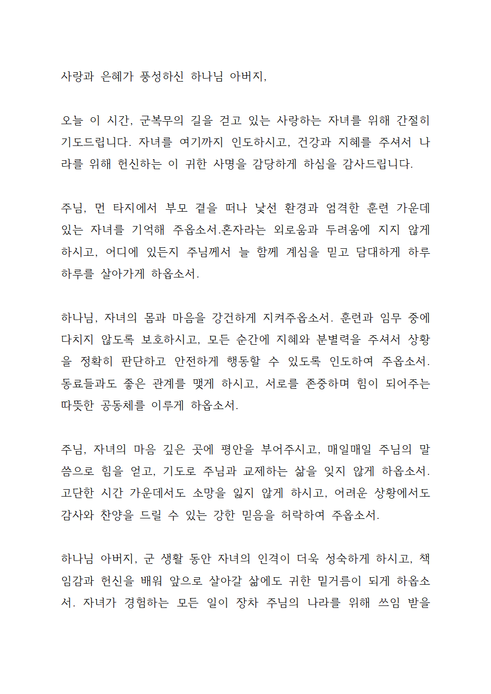 자녀를 위한 기도문 2 (군복무 자녀)