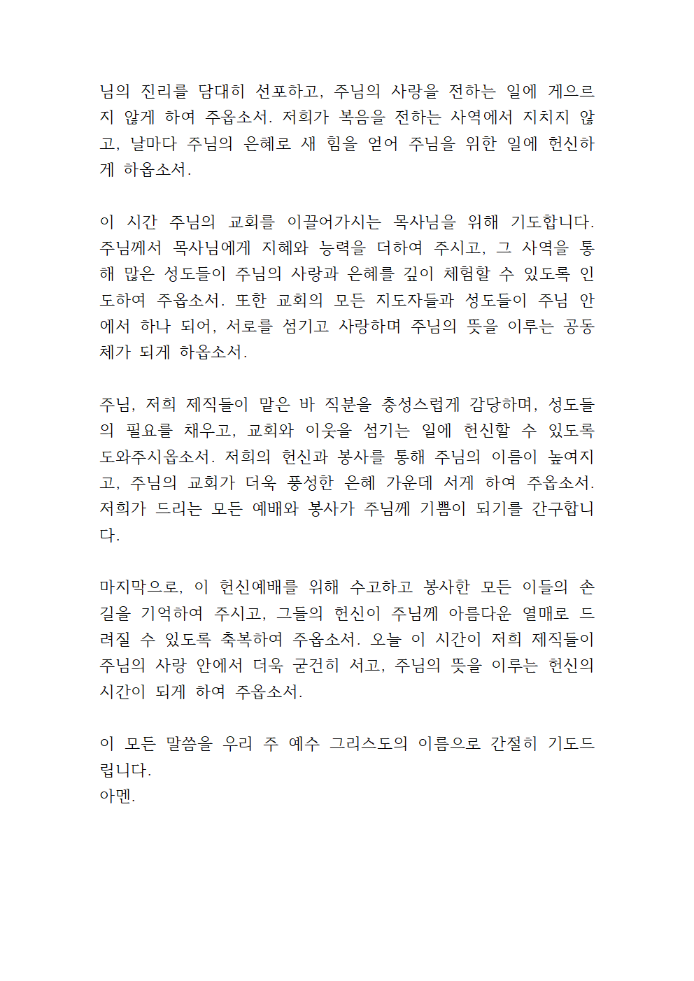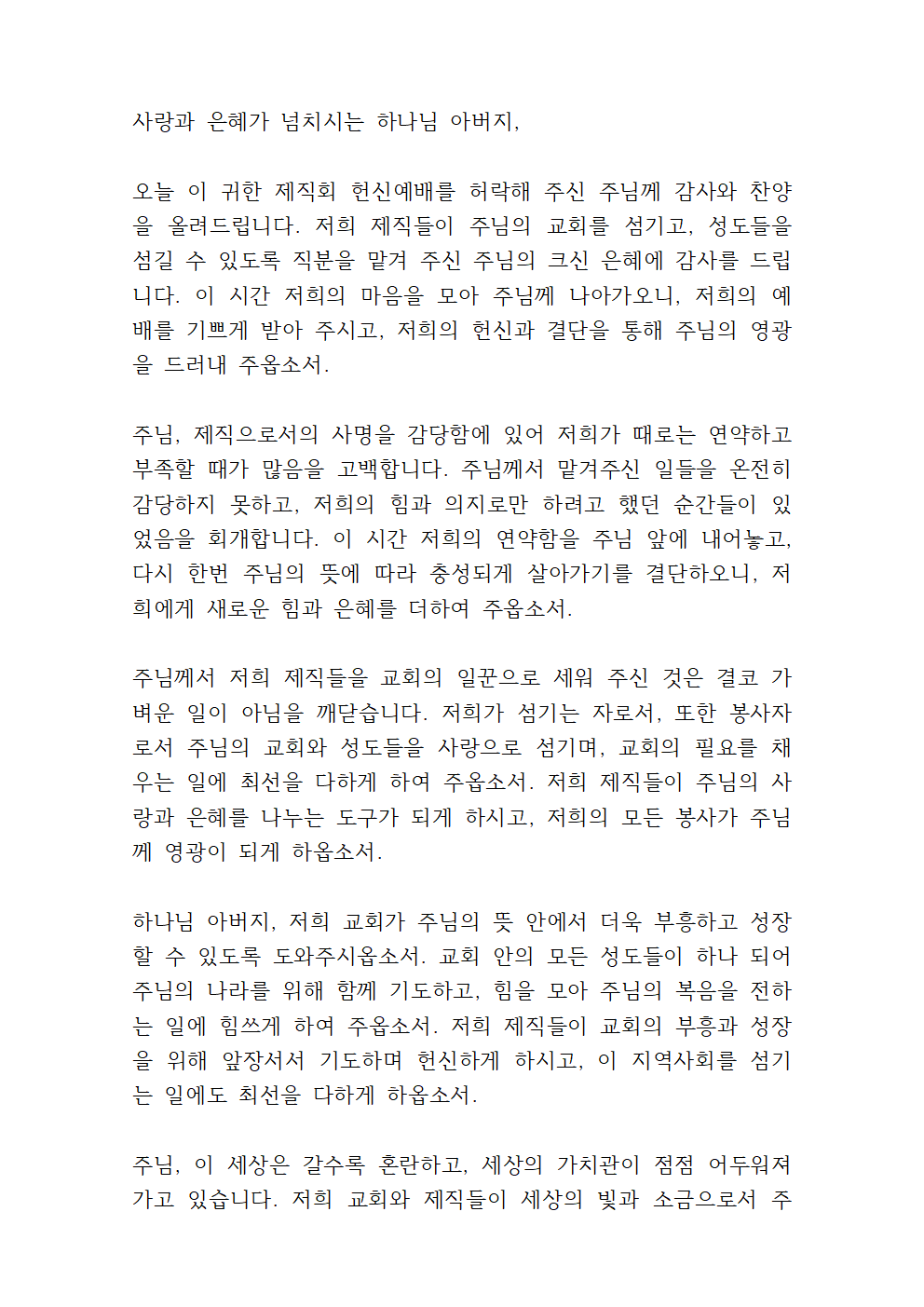 남선교회, 여전도회, 제직회, 교사, 찬양대 등 각 부서의 헌신예배 대표기도 시 활용할 수 있도록 준비했습니다.