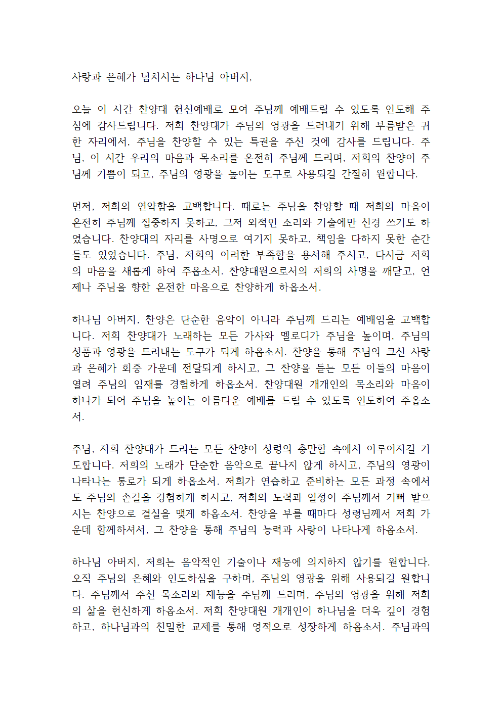 헌신예배 대표기도 시 아래 기도문들을 참고해서 기도해 보세요.~!!
