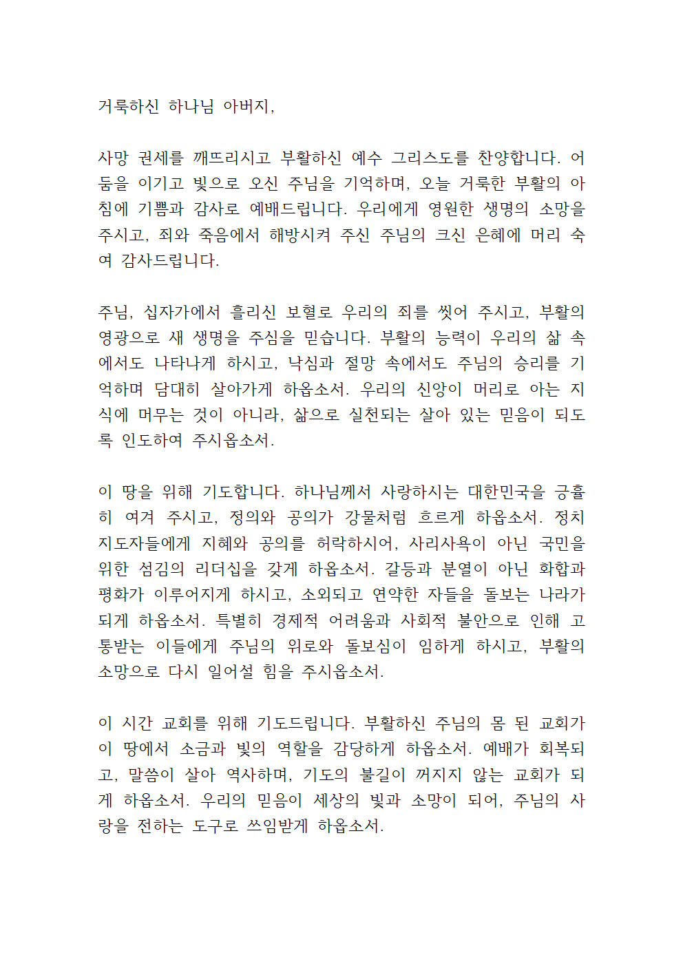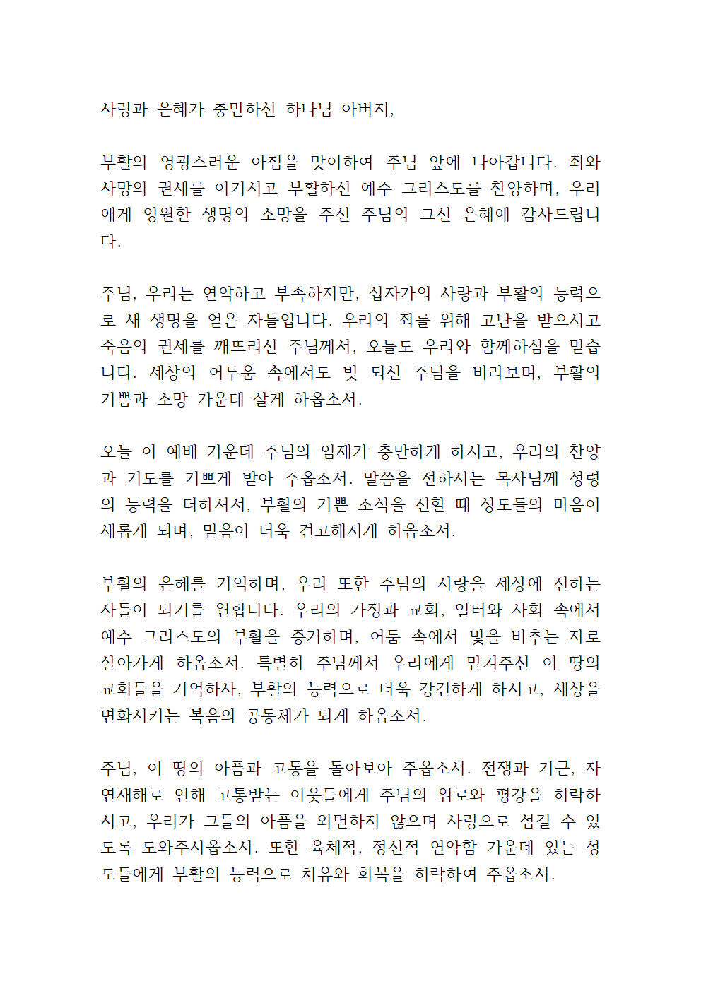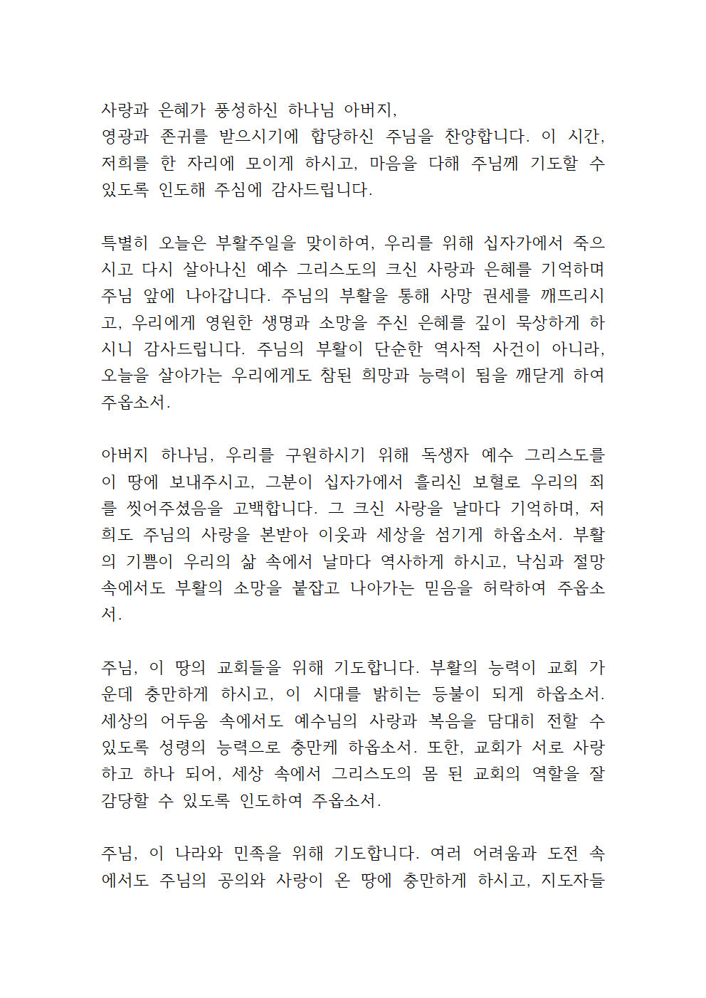 부활주일 대표기도문 내용