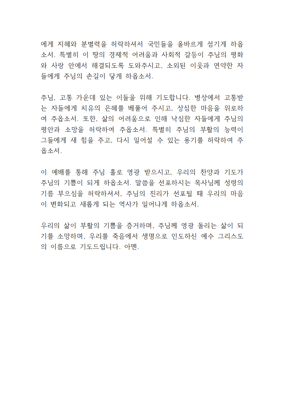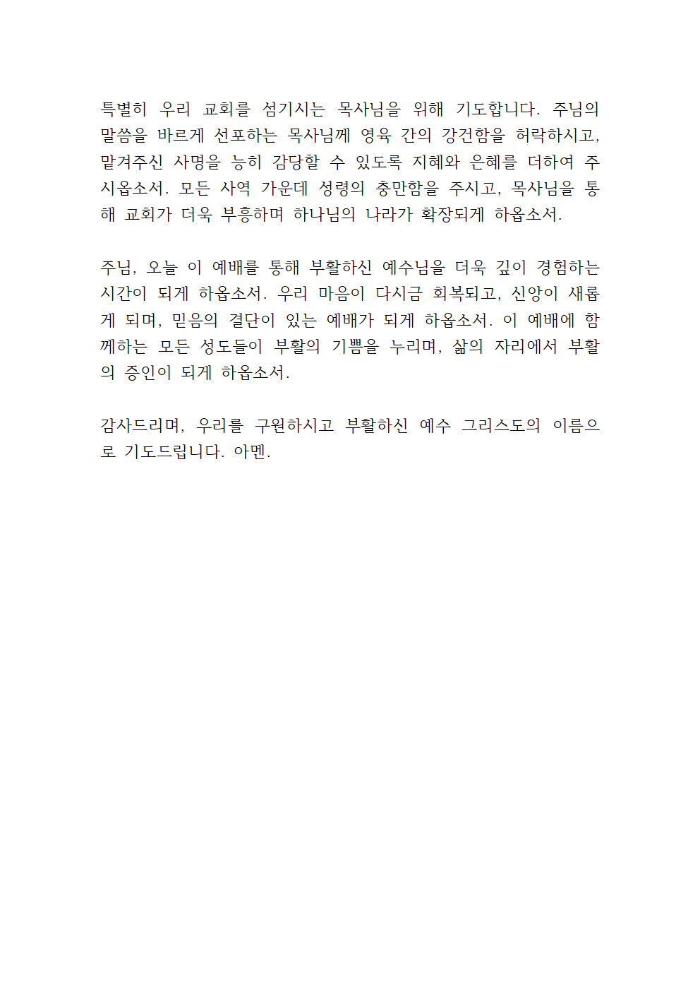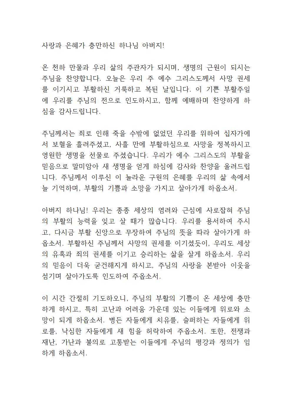 부활주일 대표기도문 내용