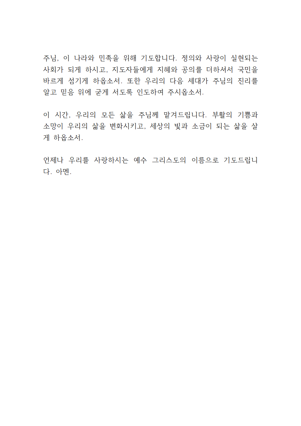 이 모든 말씀을 우리를 죄와 사망에서 구원하시고 부활의 소망을 주신 예수 그리스도의 이름으로 기도드립니다.