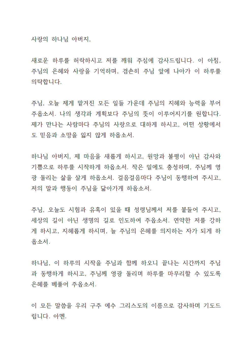 아침에 일어났을 때 다음 기도문들을 참고해서 기도해 보세요.!