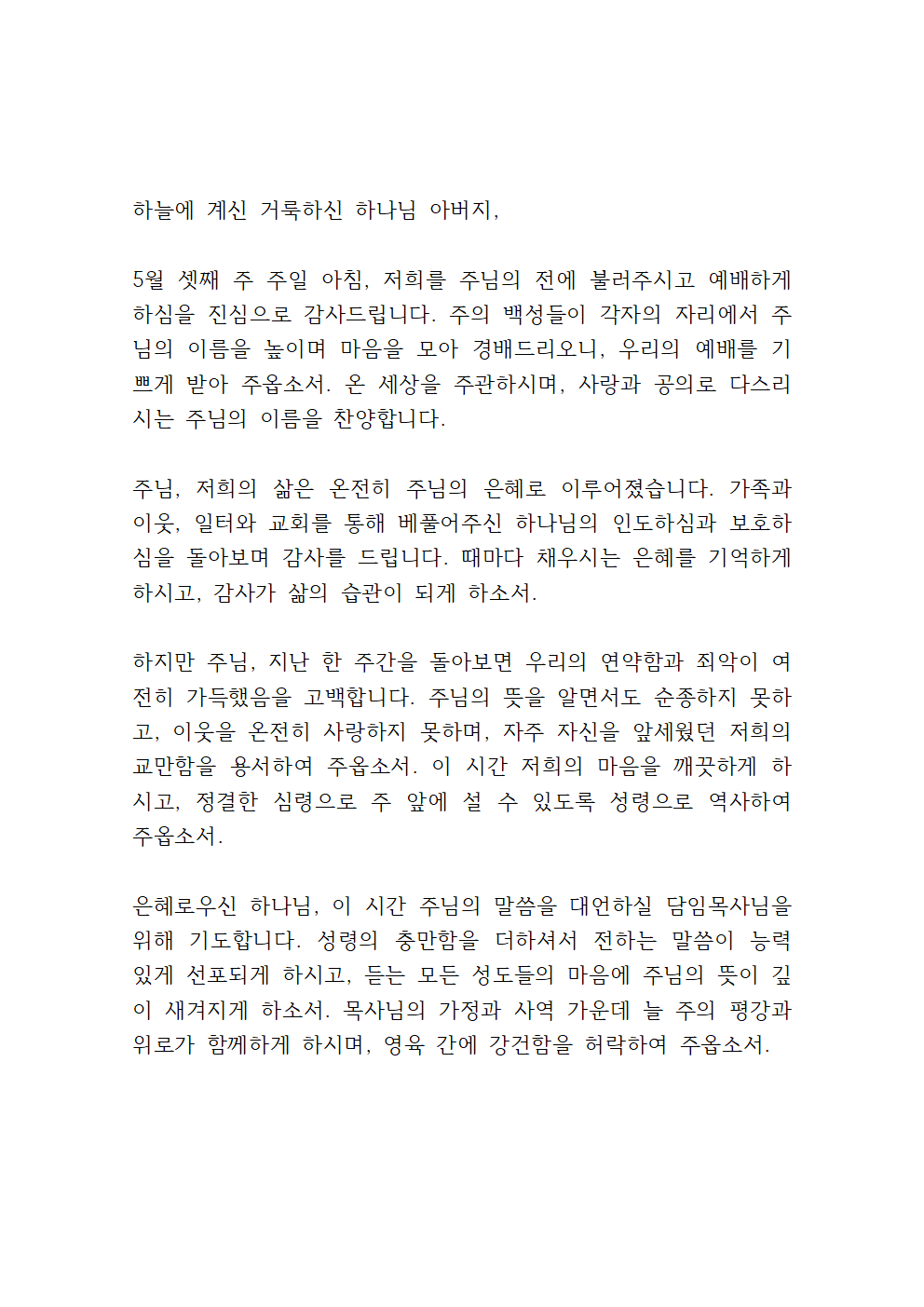 5월 셋째 주일 대표기도문 모음 BEST 1