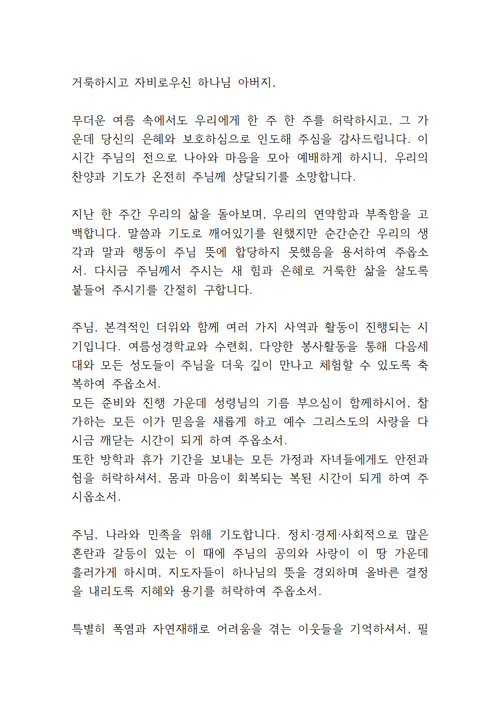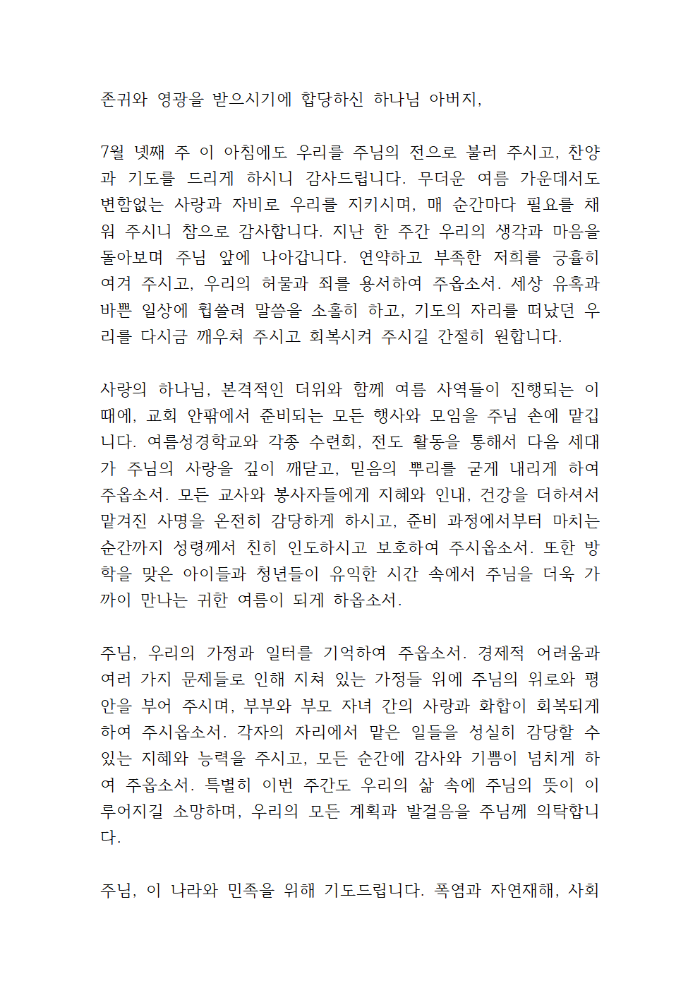 7월 4주 대표기도문 모음 BEST 1