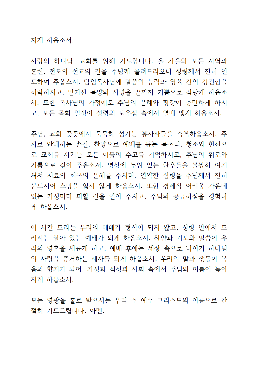 9월 주일 낮 예배 대표기도문 첨부 파일
